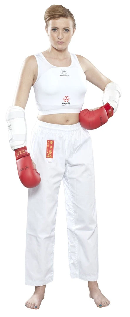 The Official Hayashi WKF chest guard set for active sportswomen in three convenient sizes. To select correct size see size chart. Comes with 5 language, English, French, German, Italian and Spanish Instructions for use and fitment guide insert.
